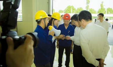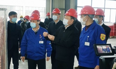 2月26日 ,,,,,,,湖州市市委副书记、代市长王纲一行莅临Z6尊龙旗舰厅官网入口电气调研考察。。。。。。。。王市长在Z6尊龙旗舰厅官网入口集团董事长蔡兴强、Z6尊龙旗舰厅官网入口电气总司理徐珺文的陪同下,,,,,,,旅行了连铸连轧生产线、细密导线生产线等。。。。。。。。蔡总、徐总划分针对集团复工历程、