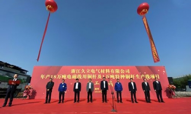 4月20日,,,,,,,集团下属子公司-浙江Z6尊龙旗舰厅官网入口电气质料有限公司年产18万吨电磁线用铜杆及1万吨特种铜杆产品生产线项目开工仪式在湖州安吉举行。。。。。。。。